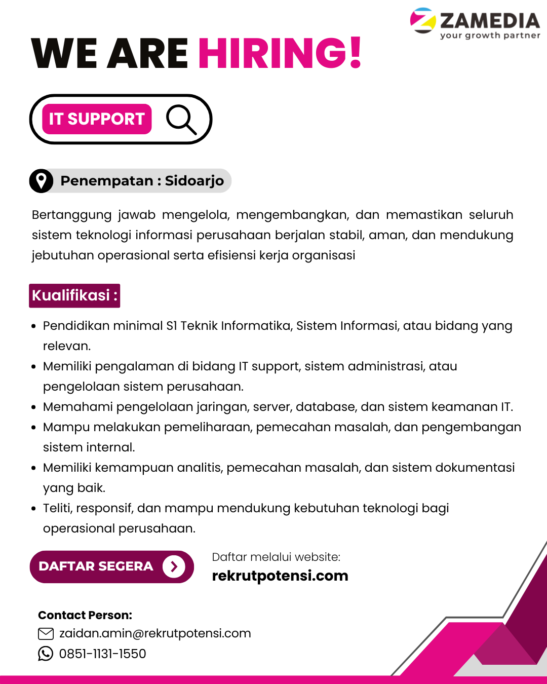 Bertanggung jawab mengelola, mengembangkan, dan memastikan seluruh sistem teknologi informasi perusahaan berjalan stabil, aman, dan mendukung jebutuhan operasional serta efisiensi kerja organisasi